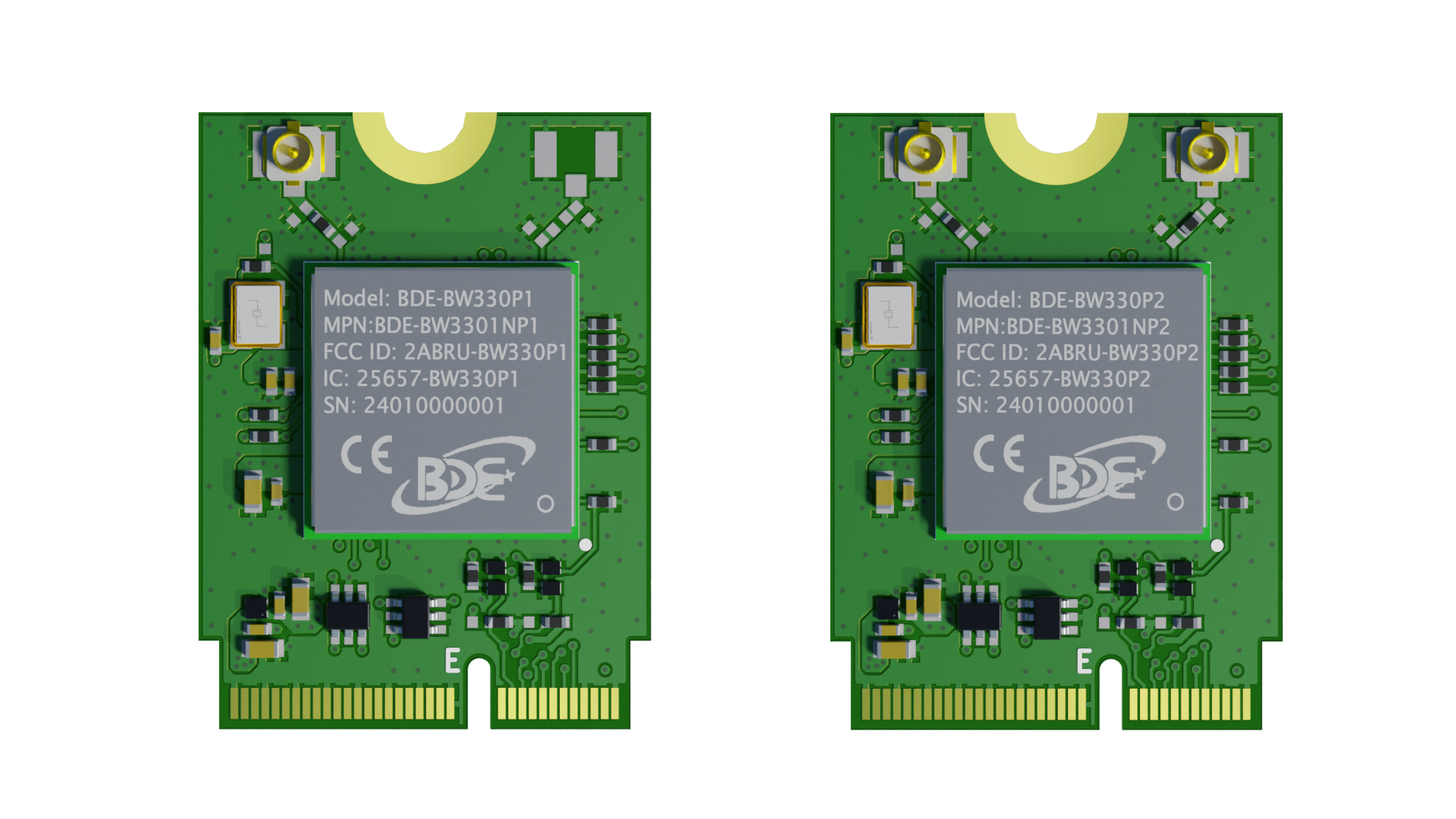 BDE-BW3301NPxM2 are 2.4-GHz Wi-Fi 6 and Bluetooth Low Energy Combo wireless M.2 card based on TI’s 10th generation connectivity combo chip CC3301 which are based upon proven technology and complements the TI integrated devices for connectivity portfolio. These modules are ideal for use in cost sensitive embedded applications with a Linux or RTOS host running TCP/IP, where the peak throughput requirement is 50 Mbps maximum at the IP layer. BDE-BW3301NPxM2 could be the best choice for bringing the efficiency of Wi-Fi 6 to embedded device applications with a small PCB footprint and highly optimized bill of materials with lower cost. These modules integrates a BDE module (BDE-BW3301NP1 or BDE-BW3301NP2) on board, and provide a PCI Express M.2 interface to user, which are 2230 Key-E M.2 interface. They are designed for ease of use and integration to the embedded systems.